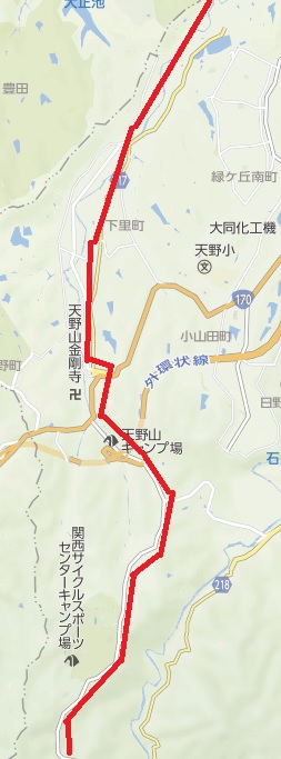 | 19:50 | 天野山金剛寺を越えたところの長野公園キャンプ場 | △ | 約15分休憩 | |